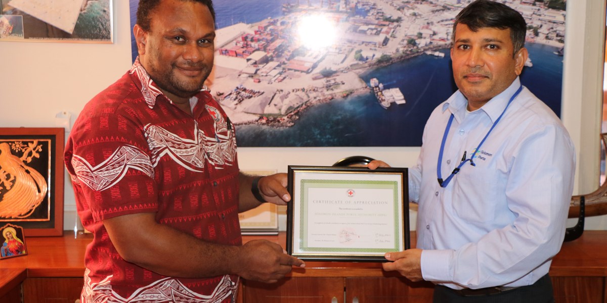 Solomon Ports has received a ‘Certificate of Appreciation’ from the Solomon Islands Red Cross society in recognition of valuable contribution in support of their fundraising initiative.